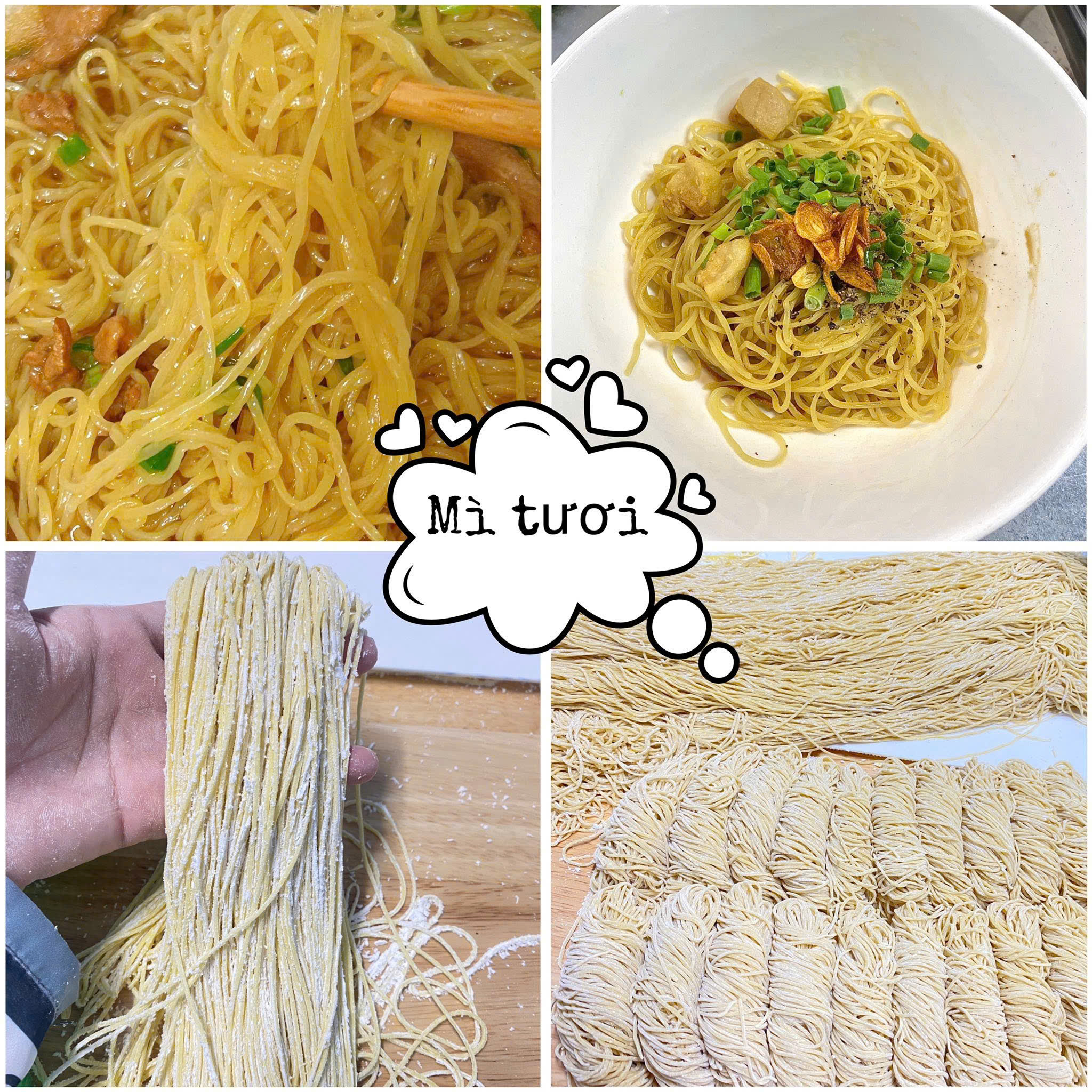 Loại mì được làm từ bột mì, trứng, nước và muối, có sợi dai, mềm, thơm ngon, dùng chế biến nhiều món ăn như mì nước, mì xào, mì trộn.